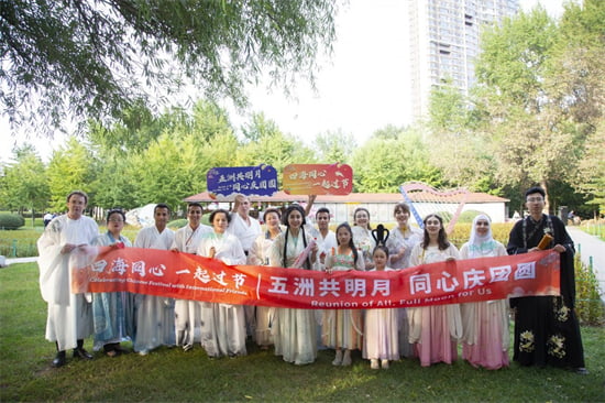 To better experience Chinese culture and immerse themselves in the ceremonial atmosphere of the historic Mid-Autumn Festival celebrations, foreign attendees donned Hanfu attire. “It feels like we’ve traveled back to ancient China. I absolutely love this outfit, it’s so beautiful,” remarked the three sisters from the USA, as they posed for pictures with their fans.